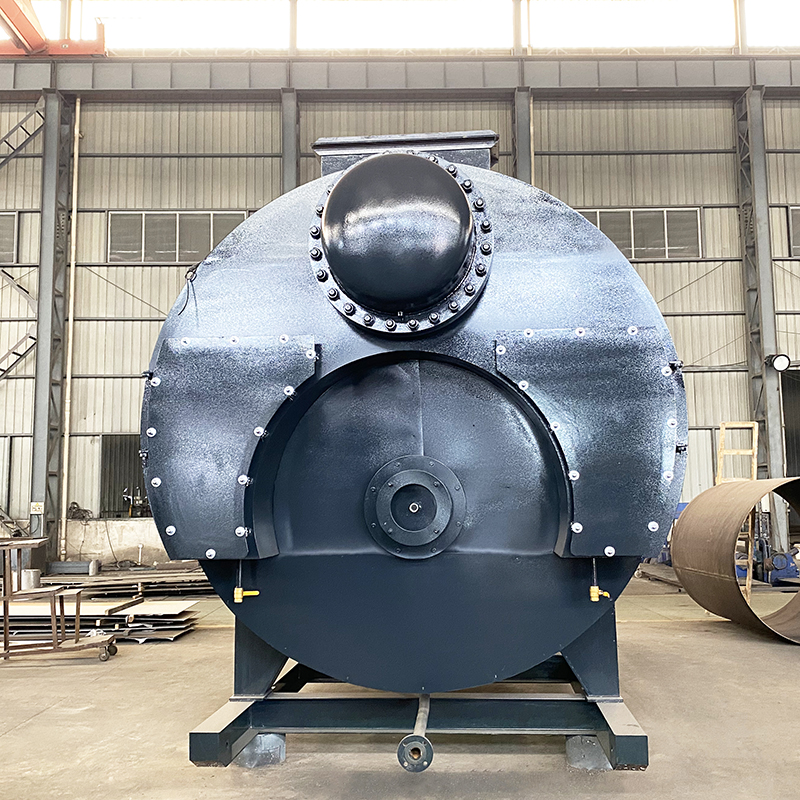 我們利用中心對稱的三回程結(jié)構(gòu)的設(shè)計(jì)思想,設(shè)計(jì)容量較大的三回程爐體,這種結(jié)構(gòu)鍋爐最大的特點(diǎn):鍋筒中心對稱、全濕背式,以及極大的內(nèi)膽和火箱的結(jié)構(gòu),有利于提供足夠的輻射受熱面。而對流受熱面有第二回程和三回程的管束構(gòu)成。回燃室前管板采用與爐膽連接,第二回程和第三回程轉(zhuǎn)煙室構(gòu)成了前煙箱,此出煙煙溫已低于500℃。后煙箱煙氣溫度在三回程煙管充分吸熱后低于150℃,然后排入大氣。前后煙箱采用鉸鏈?zhǔn)捷p形結(jié)構(gòu),方便啟閉檢修。上半部分為真空室(負(fù)壓蒸汽室),其內(nèi)裝設(shè)有管式不銹鋼汽水熱交換器,用來加熱流過換熱器中的循環(huán)水。