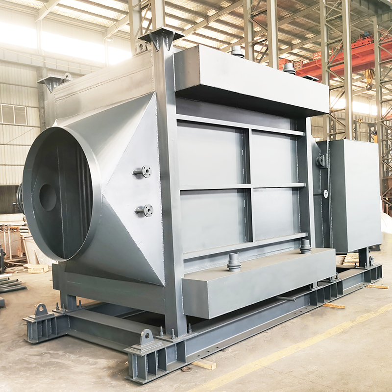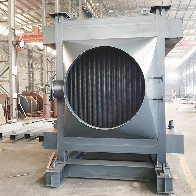 由分配集箱、下集箱、管組、上集箱組成。鍋爐給水從鍋筒引出入分配集箱,為了使集箱各部位溫度不出現(xiàn)偏差,分配集箱與下集箱進(jìn)水采用分散下降管引入,水進(jìn)入下集箱后分散進(jìn)入132根φ42×4無縫鋼管和6mm厚扁鋼組成的節(jié)圓為φ2400mm的圓形煙道受熱面,然后產(chǎn)生汽水混合物進(jìn)入上集箱,由上升管引入鍋筒。